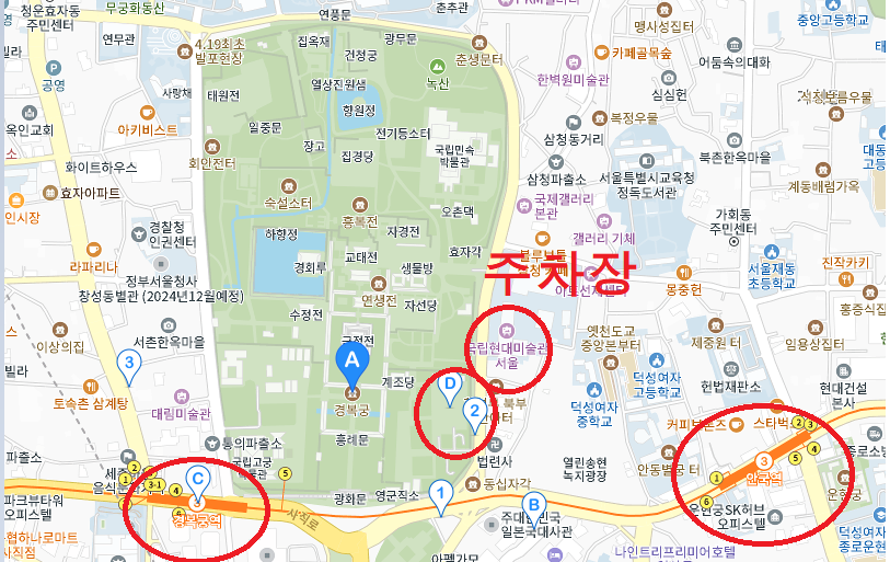 경복궁 내부 주차장 or 국립현대미술관 주차장 이용